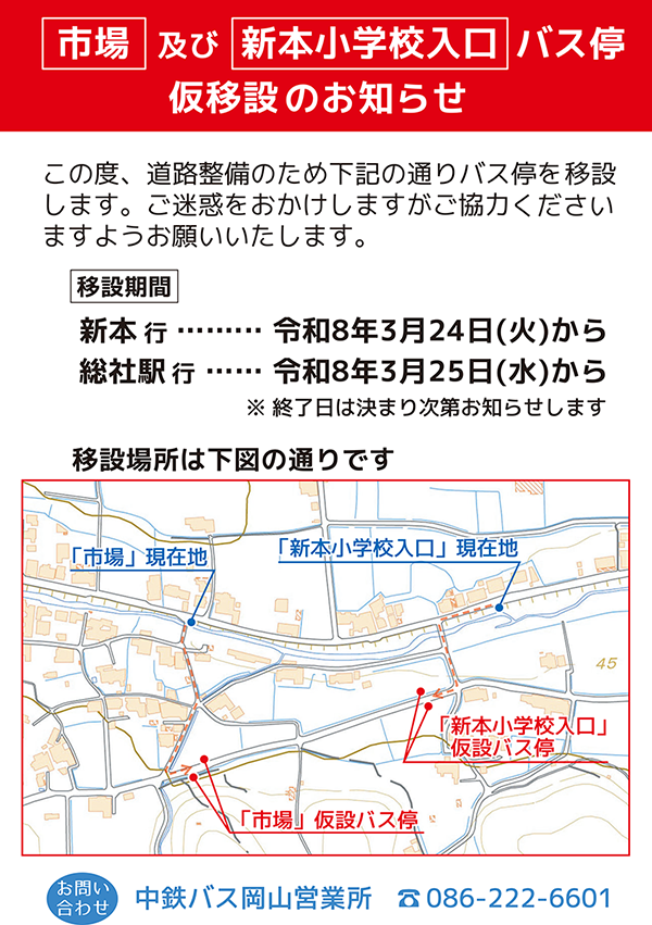 お問い合わせは 中鉄バス 086−222−6601