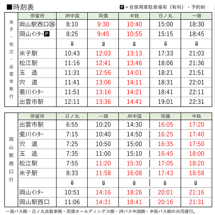 ※高速乗合バス出雲線は年末年始も通常ダイヤにて運行します。