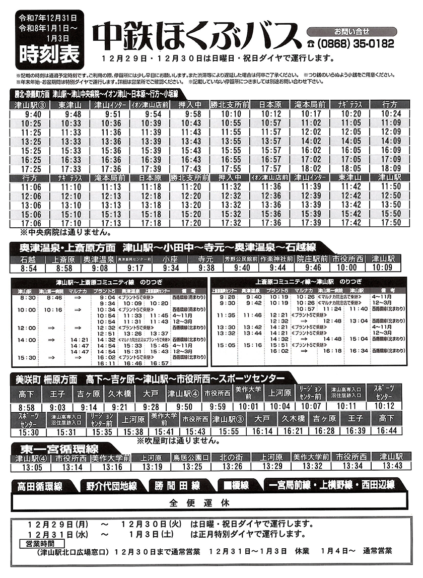 年末年始は下記の通り運行します。バスをご利用の際は十分ご注意下さい。