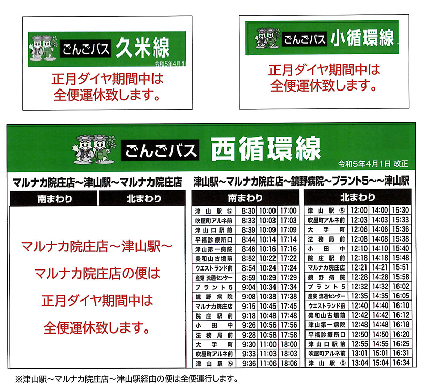 年末年始は下記の通り運行します。バスをご利用の際は十分ご注意下さい。